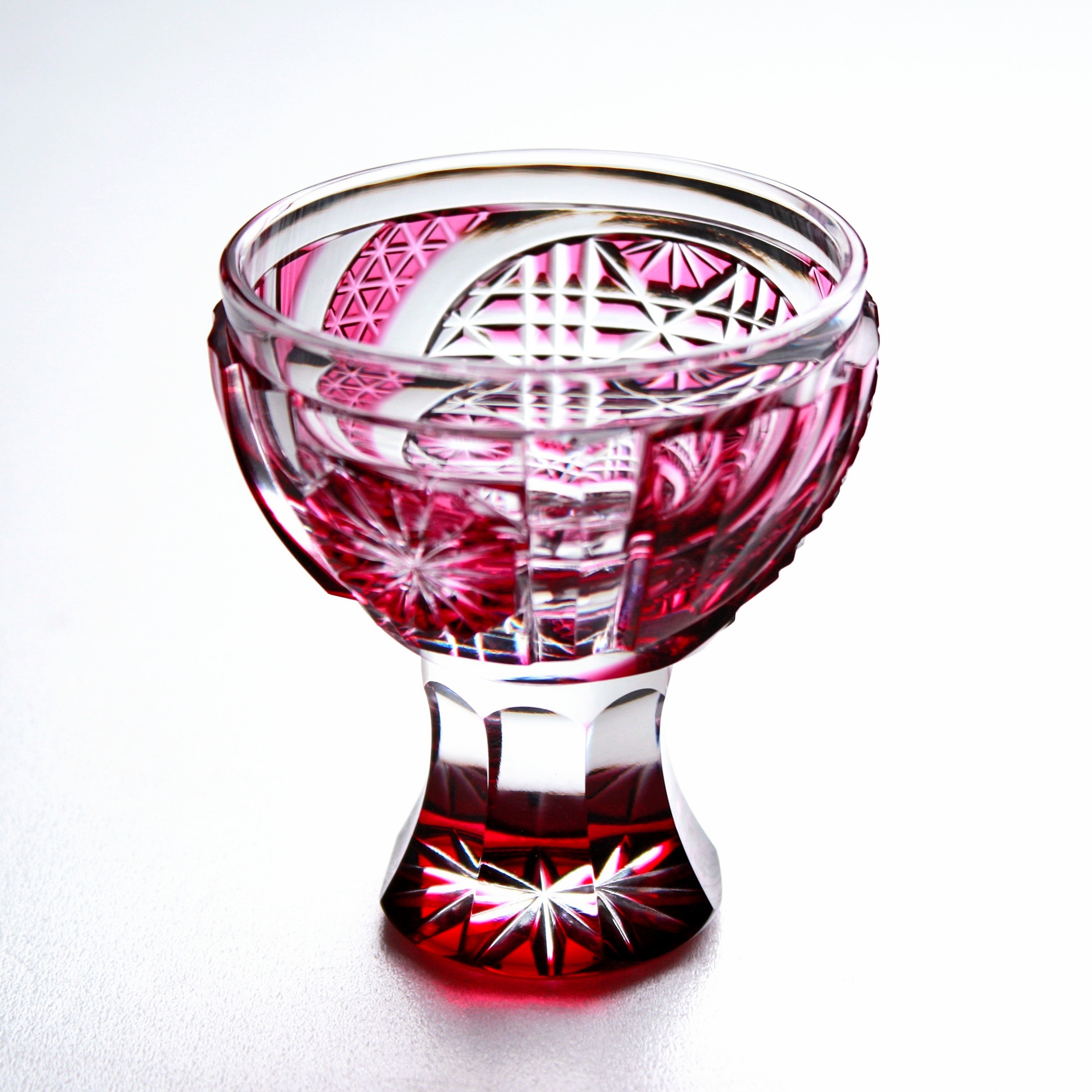 ガラスアーティスト 頌峰(しょうほう)によるこの作品は、エレガントな赤に染まった「馬上杯:金赤」です。